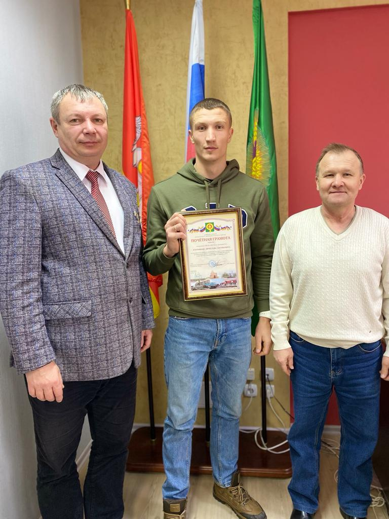 2 декабря в администрации Варненского муниципального района состоялась встреча в торжественной обстановке с Главой района Константином Моисеевым и нашим земляком, выпускником Краснооктябрьской школы, мастером спорта России международного класса Вячеславом Плотниковым. Глава района наградил Вячеслава Почетной грамотой администрации Варненского муниципального района, за заслуги в спорте. Плотников Вячеслав занял 2 место в чемпионате мира по гиревому спорту, который проходил с 27 октября по 1 ноября в столице Индии городе Нью-Дели. Вячеслав выступает уже на протяжении 5 лет в сборной национальной команде и показывает стабильно высокие результаты, уверенно приближаясь к высокому спортивному званию «Заслуженный мастер спорта России».