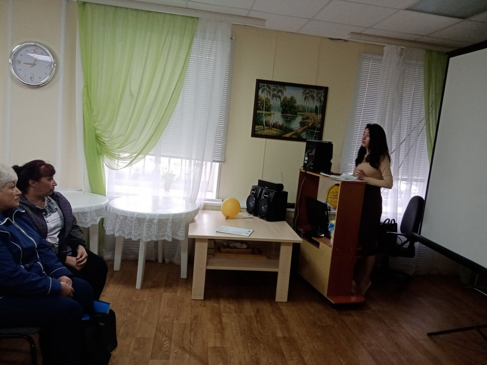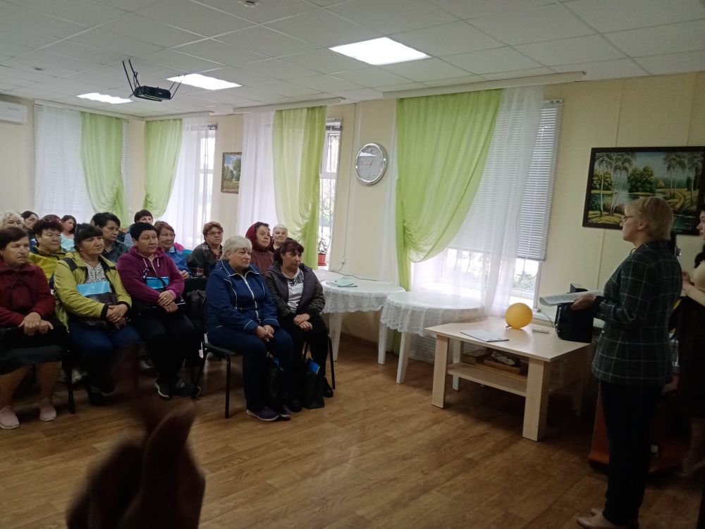 На занятии присутствовали социальные работники, осуществляющие уход за гражданами пожилого возраста и инвалидами. Последнее время среди получателей социальных услуг часто встречаются граждане с дементными нарушениями. В ходе занятия слушатели проявили живой интерес к проблеме. Психолог подробно ответила на вопросы профилактические действия позволяющие отсрочить появление деменции, и рассказала, как распознать болезнь на начальной стадии.