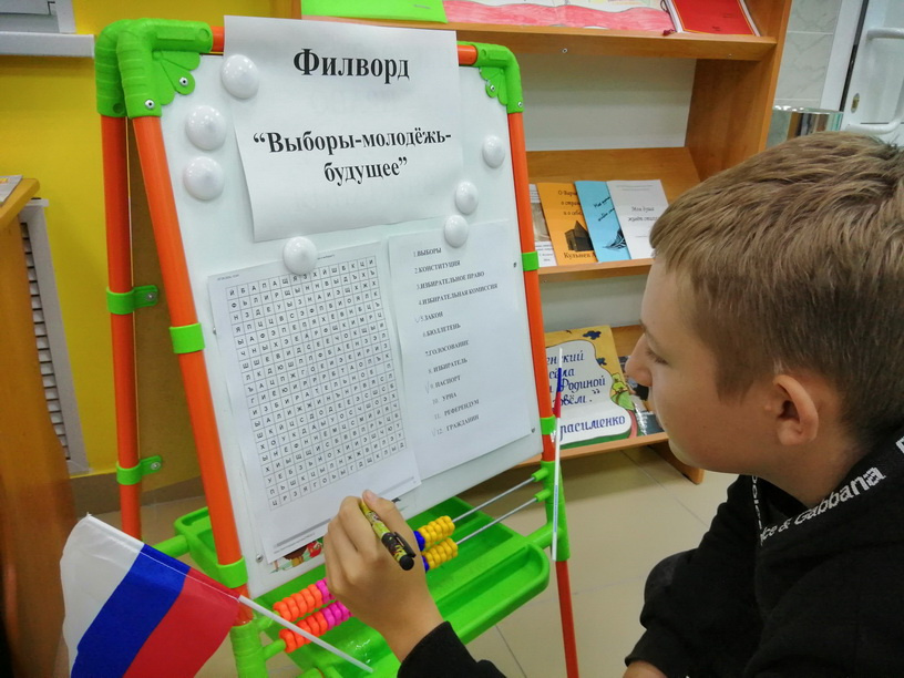 Сначала ребята получали ответы на вопросы «Что такое выборы?», «С какой целью проводятся?», «Кого выбирают?», «Кто участвует?», «Почему необходимо голосовать всем гражданам?», а уже потом предлагалось найти «спрятанные» слова по данной теме.