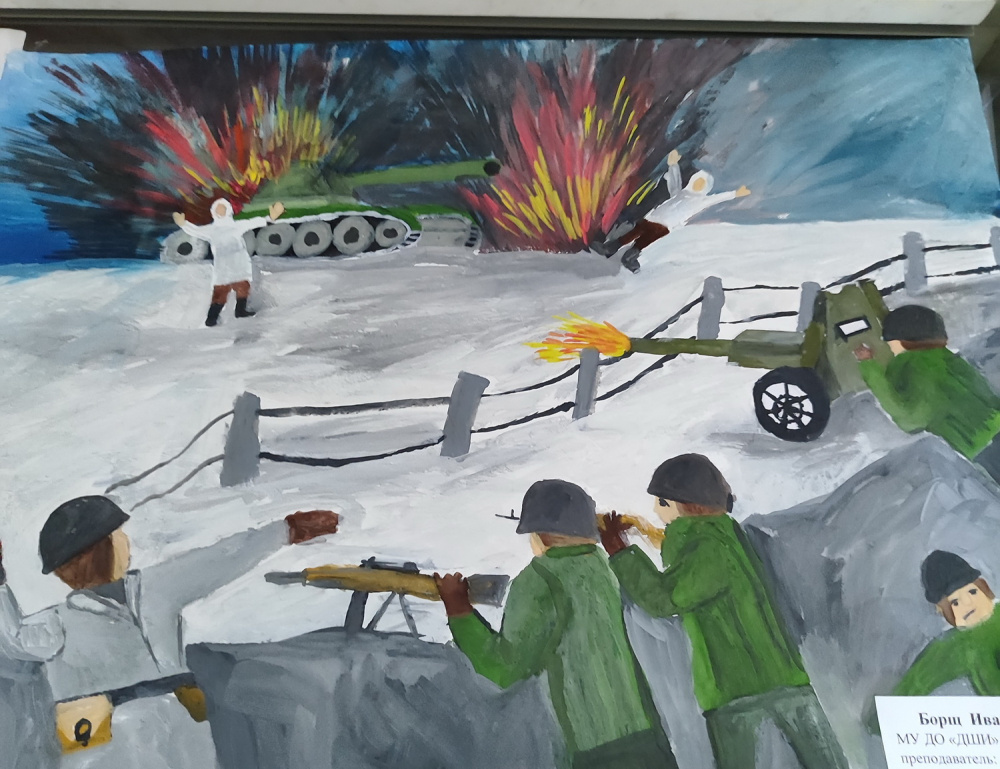 В 2025 году Россия отмечает главный праздник года и страны: 80 – летие Победы в Великой Отечественной войне. В рамках празднования юбилейной даты в Варненском краеведческом музее проходят выставки, экскурсии, конкурсы, различные акции, творческие встречи, мероприятия различного формата. Именно этой важной дате посвящена выставка рисунков «Война для меня – это…», в которой приняли участие учащиеся художественного отделения Варненской детской школы искусств, педагоги Мурзина Ольга Викторовна и Файзулина Гульнур Каримовна и учащиеся художественного отделения Новоуральской детской школы искусств, педагог Макарова Татьяна Юрьевна. Дети правдиво и реалистично отразили в рисунках свое отношение к историческим событиям военных лет, к празднику Победы. Все работы были яркие, насыщенные и несли свой необъятный смысл, который отражает сохранение памяти о подвиге нашей страны - о Победе в Великой Отечественной войне.