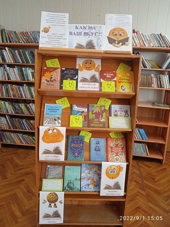 с 1 июля начала работать выставка-рейтинг «Как на ваш вкус!». Библиотекари предлагали ребятам прочитать книги с выставки, а после прочтения оставить свой отзыв и порекомендовать её другим.