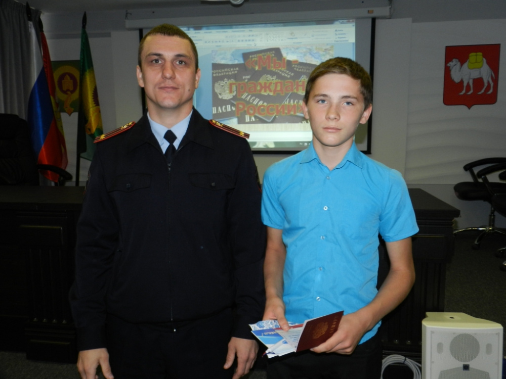 Затем церемонию вручения первых паспортов провели заместитель начальника отдела подполковник внутренней службы Николай Рыбаков и заместитель начальника отделения по вопросам миграции старший лейтенант полиции Алена Ермолаева.