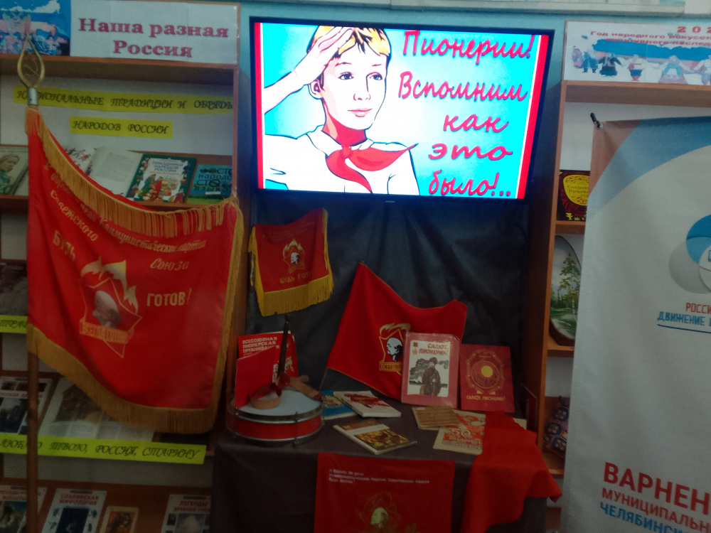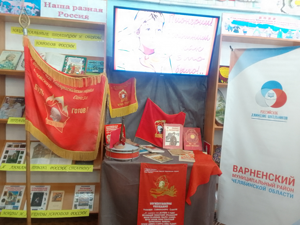 15 мая в рамках празднования юбилейной даты и с целью повышения внимания к исторической памяти работниками «Варненского краеведческого музея им. Савина В.И.» совместно с работниками «Варненской районной библиотеки» была организована предметно – передвижная экспозиция «Пионерскому движению – наше уважение!», приуроченная к написанию муниципального этапа диктанта для старшеклассников Варненского муниципального района.