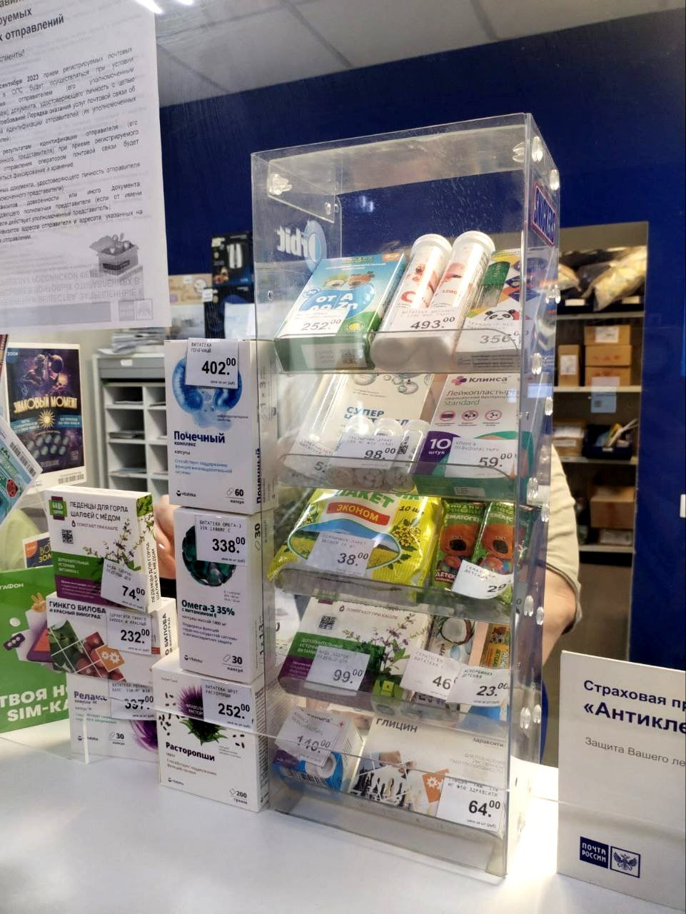Почта России реализует пилотный проект в отделениях Челябинской области по продаже фармацевтической продукции. Разрешенный ассортимент наиболее популярных товаров, не требующих лицензии, уже представлен в более чем 500 отделениях региона.
