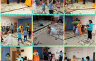 К малышам во вторую младшую группу пришли ребята из разновозрастной группы и показали сказку «Теремок», но на новый, осенний лад. В старшей и разновозрастной группах к детям пришли Ах и Ох. Дети средней группы смотрели кукольный театр про Катин зонтик. А в подготовительной к школе группе прошло интегрированное музыкальное развлечение, на котором дети оживляли картину, приклеивая необходимые цветные элементы.