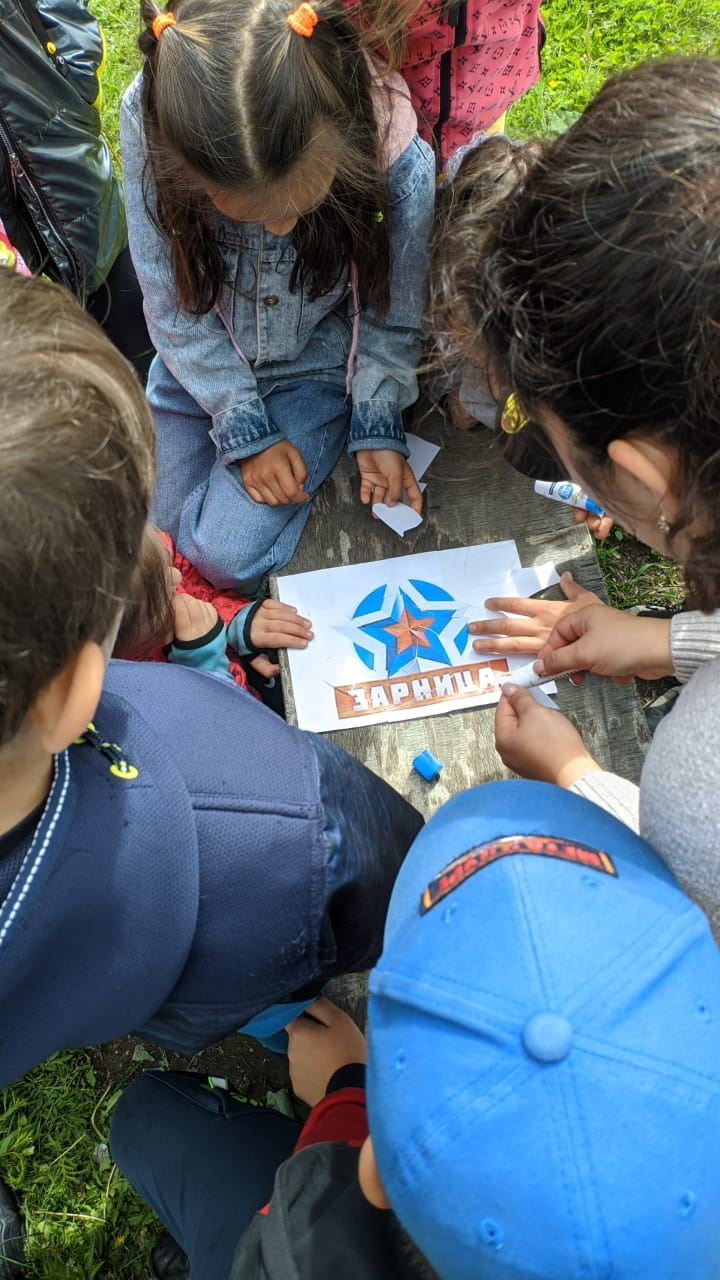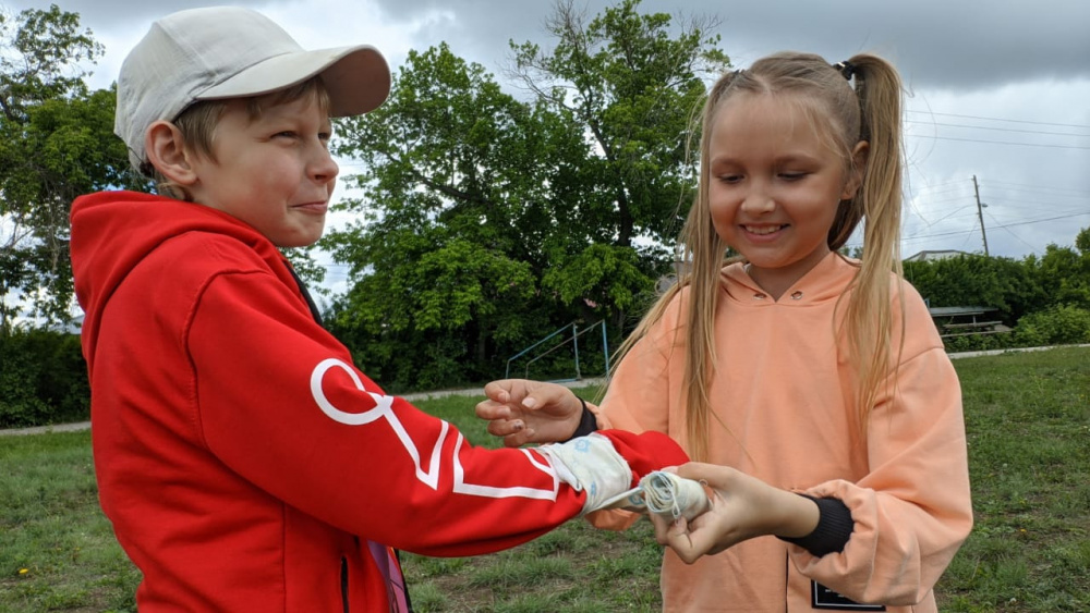 В игре приняли участие 4 команды - 4 отряда "Мечтатели", "Дружные ребята", "220 вольт", " Космические жители". Ребята выполняли этапы "на время" искали мины, метали "гранаты", собирали символику, придумывали и изображали на ватманах боевое знамя своих команд, на импровизированных носилках доставляли раненых в госпиталь и оказывали медицинскую помощь...