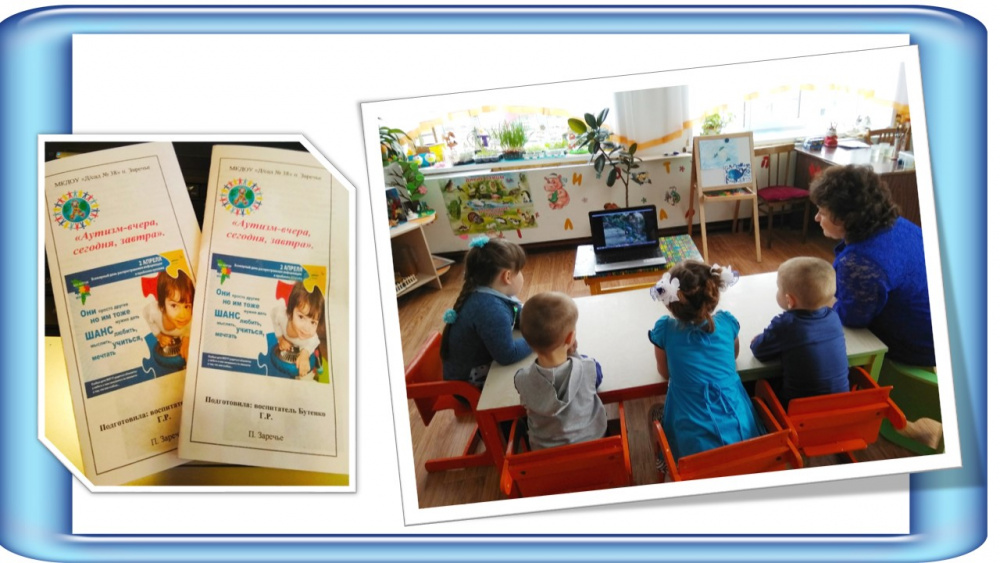 Был просмотрен видеофильм «Особенные дети», родителям воспитанников раздали для ознакомления памятки о том, что такое аутизм, и как себя вести в присутствии особенных детей.