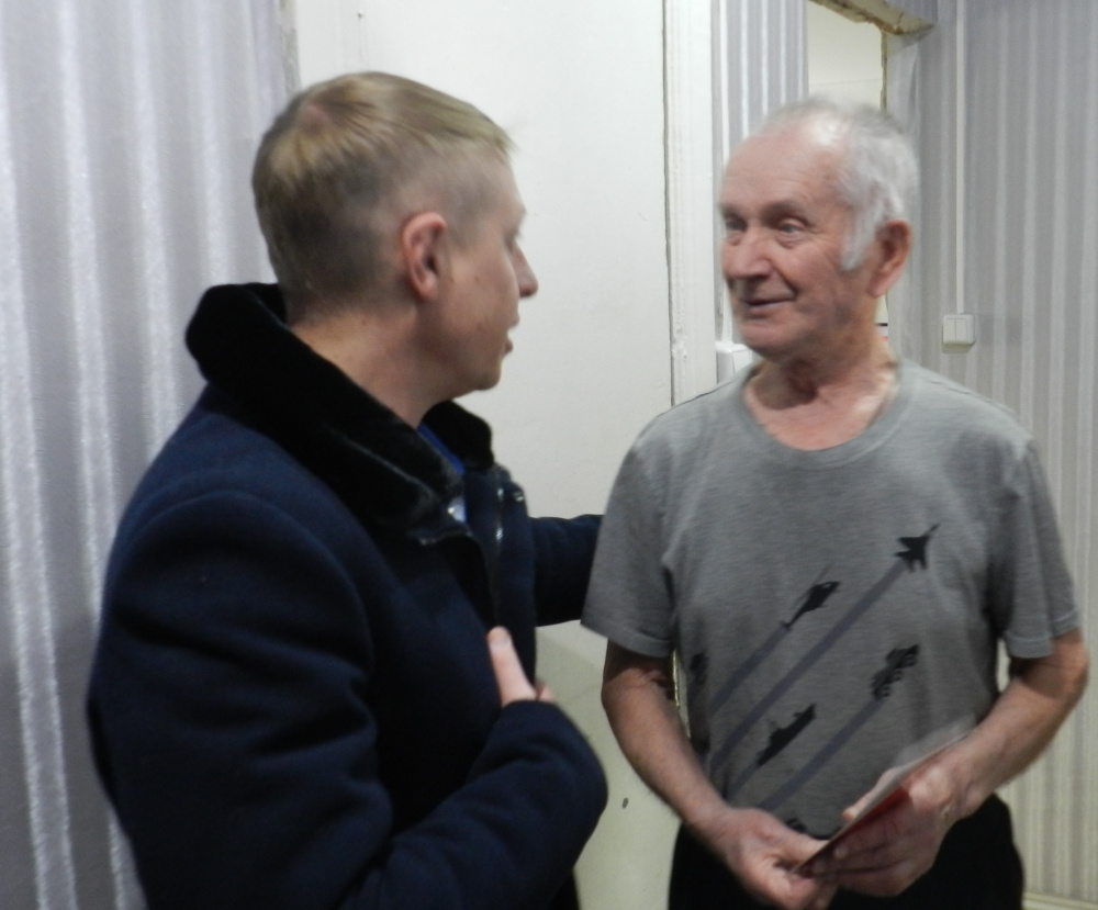 В этот же день председатель Совета ветеранов майор юстиции в отставке Алексей Коннов поздравил ветеранов с наступающим праздником, пожелав доброго здоровья и благополучия, бодрости и оптимизма и вручил поздравительные открытки. Ветераны поблагодарили за оказанное внимание, а некоторые поделились историями из жизни, рассказали, как служили в Советской Армии.