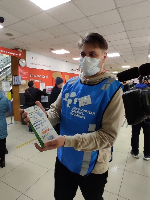 Волонтеры работают во всех многофункциональных центрах: рассказывают жителям об особенностях проведения переписи и способах ее прохождения. И если кто-то решил переписаться, сопровождают до стационарного участка. Они одеты в жилеты с символикой Всероссийской переписи населения и имеют нагрудные бейджи.