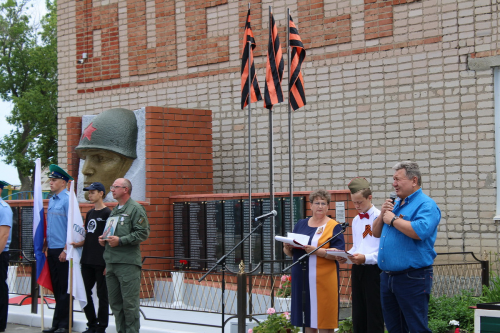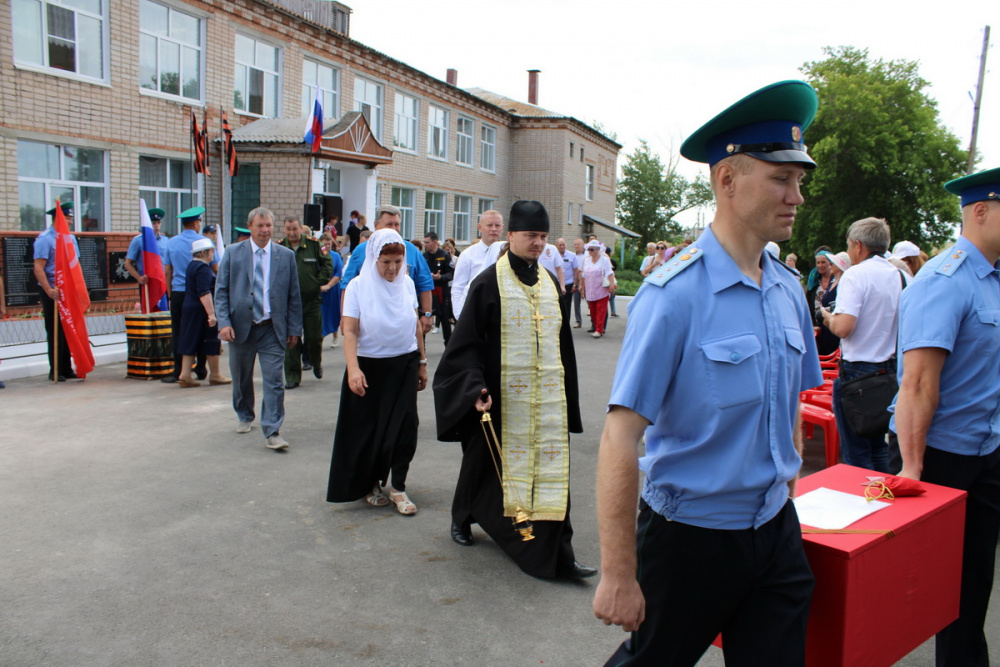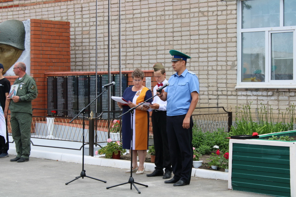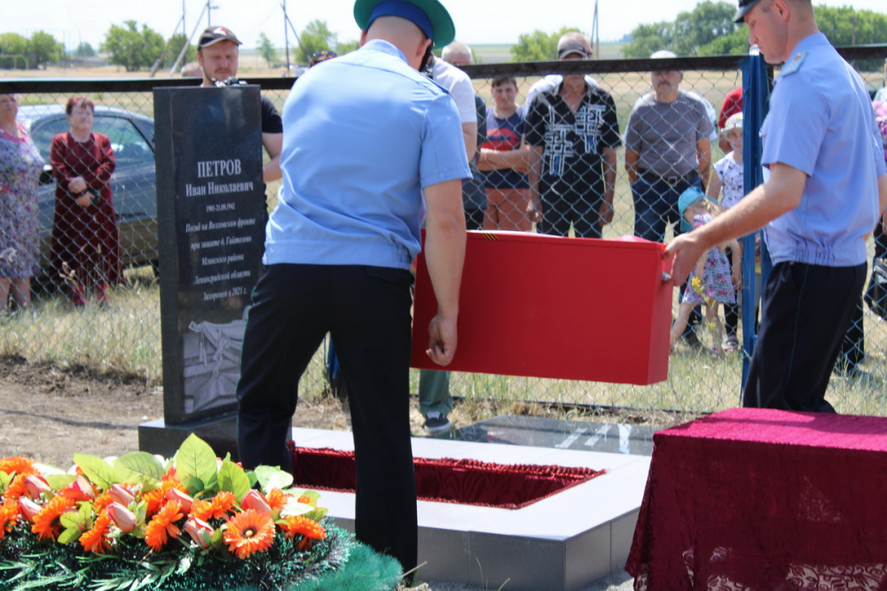 После открытия памятника и возложения цветов, ведущая церемонии директор школы Т.Н. Клочкова сказала: «Могилы наших земляков не только в России, но и на территориях тех европейских государств, которые освобождала Красная Армия от гитлеровской чумы: Чехословакии, Германии, Венгрии, Польше, Белоруссии, Украине, Латвии. До сих пор остаются безвестными места гибели более 50 наших земляков, пропавших без вести. Но один из них сегодня найдет покой в родной земле - Петров Иван Николаевич».