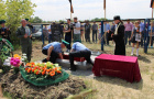 Далее состоялось траурное шествие к месту захоронения. После отпевания, прогремел салют в честь воина, возложение цветов на могильную плиту.