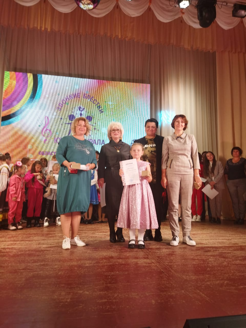18 сентября в Чесме прошел зональный тур областного конкурса исполнителей детской эстрадной песни «Звонкие блёстки Южного Урала», в котором приняли участие вокальный ансамбль «Улыбка» и солистка Горват Арина под руководством Кропылевой Валерии МУК «Новоуральская ЦКС». Праздник начался с приветствия и пожелания побед от первого заместителя Главы Чесменского муниципального района Инны Владимировны Тимашовой и куратора проекта, ведущего специалиста инструментального и вокально-хорового жанров художественно-творческого отдела ОГБУК «ЧГЦНТ Регины Владимировны Биушевой. На фестивале вокальный ансамбль «Улыбка» получили диплом лауреата 3 степени. Арина Горват – диплом лауреата 1 степени.
