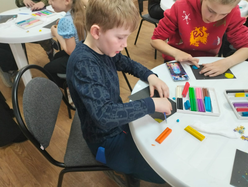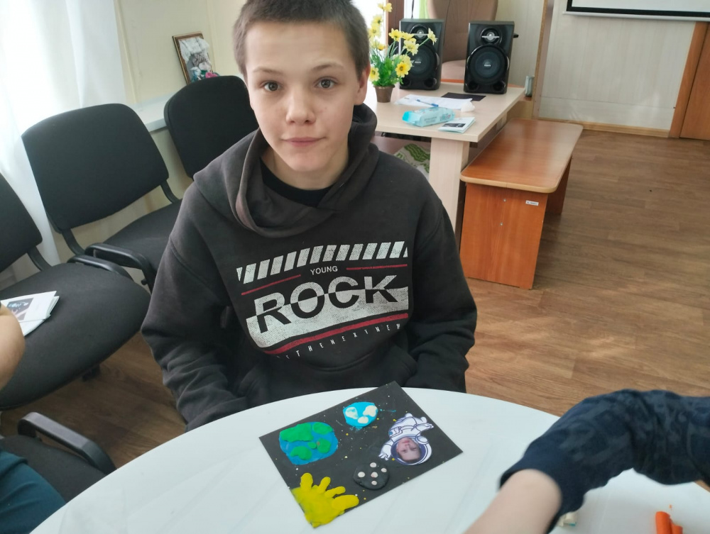 В рамках реализации муниципальной программы «Социальная поддержка населения Варненского муниципального района Челябинской области» на 2025-2030 гг. специалистами отделения помощи семье и детям МУ КЦСОН для детей из семей, состоящих на социальном сопровождении, был организован мастер-класс по изготовлению аппликации, посвященный Дню космонавтики.