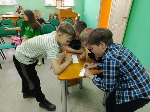 Для создания атмосферы сотрудничества и взаимопомощи, сообразительности, наблюдательности, воображения, фантазии и умения работать в команде ребята перевоплощались и «выходили в космос», находились в «кресле космонавта», «шифровали» и «воображали».