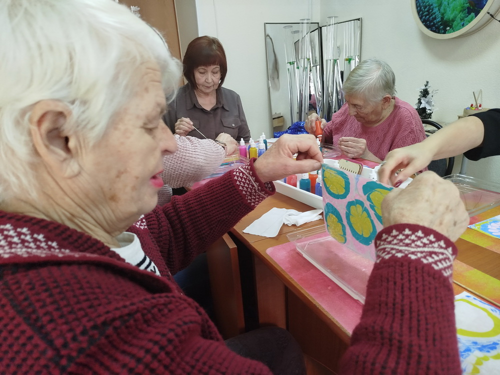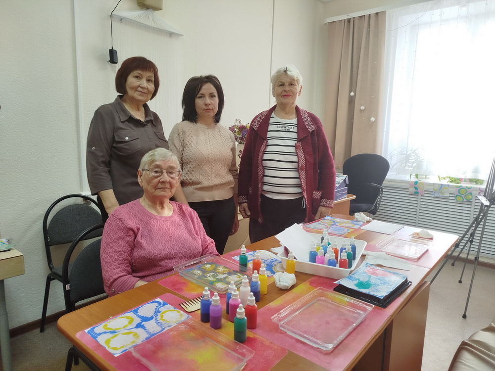 Морозным утром 14 января участники Проекта встретились в психологической студии «Гармония», чтобы познакомиться с новым видом художественного творчества «Рисование на воде красками Эбру». Это был первый опыт подобного творчества у всех участников занятия. Яркие краски, причудливые узоры, изящные линии, как по волшебству перенеслись на лист бумаги, вызвав восхищение у пожилых людей. Все работы получились уникальными и индивидуальными.