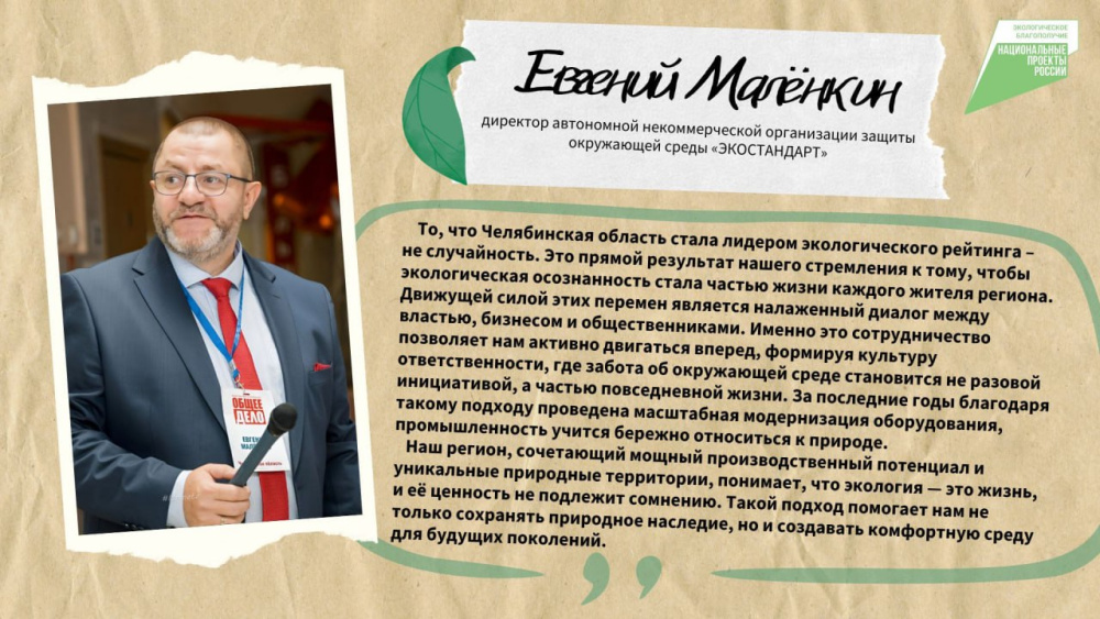 «Это признание – результат системной работы команды губернатора Алексея Текслера, ответственного отношения промышленных предприятий и активного участия жителей», – прокомментировал министр экологии Челябинской области Игорь Гилев. Он подчеркнул, что усилия по улучшению качества окружающей среды дают реальные плоды, а отношение жителей к экологической ситуации улучшилось более чем на 10 процентов, что является серьезным показателем доверия для промышленно развитого региона.