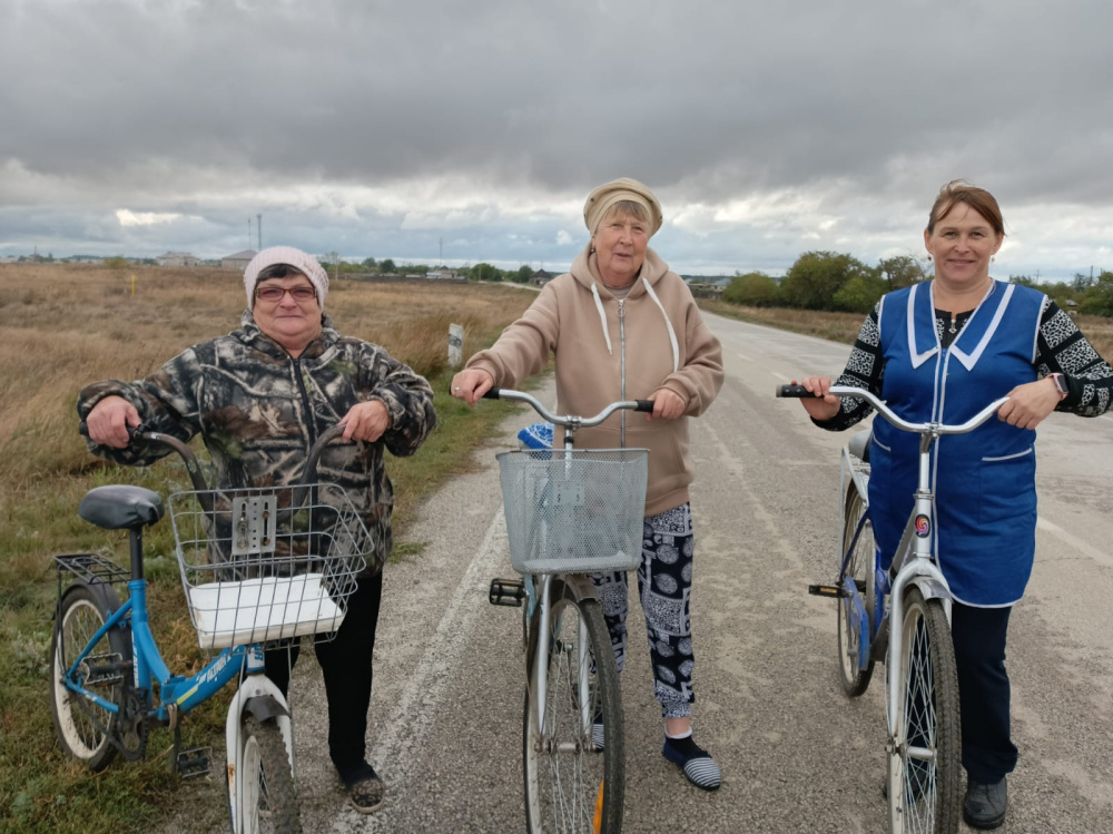 Очень часто позитивный настрой специалиста социальной службы становится примером для обслуживаемых. Солнечным сентябрьским деньком Ирина Александровна организовала для получателей социальных услуг Игошиной В.А. и Романчук В.П. велопрогулку на природу. Несмотря на проблемы со здоровьем, наши пенсионерки не утратили способности радоваться и восхищаться прекрасным, получили от прогулки удовольствие и смогли полюбоваться красотой осенней природы в окрестностях с. Алексеевка.