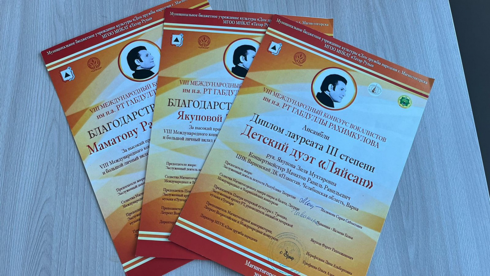 16 февраля в г. Магнитогорске прошел гала-концерт VIII Международного конкурса вокалистов имени народного артиста Республики Татарстан Габдуллы Рахимкулова, на котором состоялось награждение лауреатов. В числе их оказались и наши юные воспитанники из Центра национальных культур при Двореце культуры "Планета" - детский вокальный дуэт татарской песни "Ляйсан". Поздравляем Габдынурова Артема и Веронику Давыдову. Их дебютное, яркое выступление было высоко оценено членами жюри.