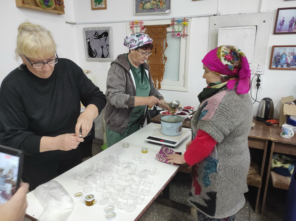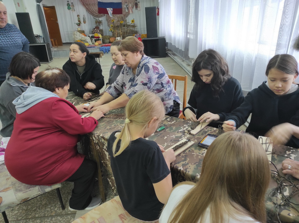 Все присутствующие активно включились в работу; плели маскировочные сети, браслеты выживания, шили антидроновые одеяла, делали заготовки для сухого борща, «варили» заживляющую мазь.