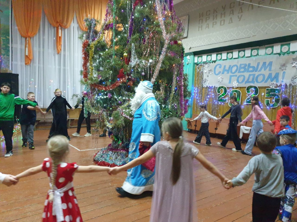 Подготовка началась задолго до наступления праздников. Руководители с детьми учили тексты, песни, танцы, новогодние хороводы. Дети пришли на представление нарядные, весёлые в предвкушении праздника. И их надежды оправдались. Ребят в зале встретили Дед Мороз и Снегурочка. Дети вместе со сказочными героями вокруг ёлочки водили хороводы, танцевали и пели песни. А работники ДНПиР увлекли ребят в волшебный мир гаданий. После всех игр и танцев дети читали стихи Деду Морозу и получали праздничные сладкие подарки. По старой доброй традиции завершился праздник вкусным чаепитием.
