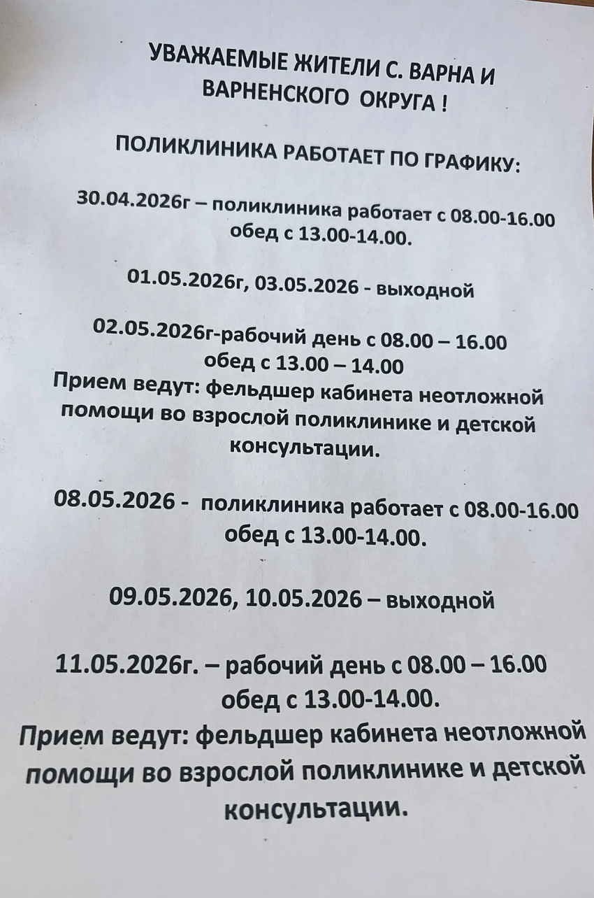 Строка навигации Главная > Новости 29 апреля 2026 - 14:53Материал относится к разделуНовости ГБУЗ «Районная больница с. Варна»Поделиться: