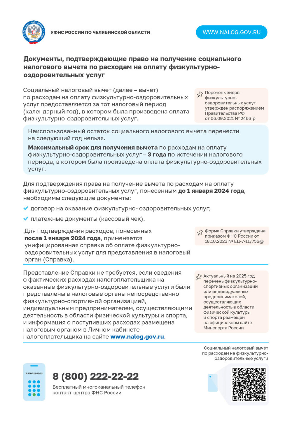 Предлагаем вашему вниманию информационные материалы о механизме получения социального налогового вычета в связи с оплатой физкультурно-оздоровительных услуг, разработанные УФНС.