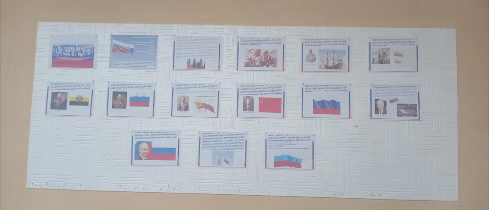 Кроме того, в ДК была организована тематическая выставка «Три цвета Родины». Посетители могли узнать больше о символике флага, его истории и значении.