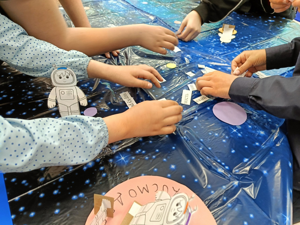 После этого учащиеся отправились в «космическое путешествие», где выполнили задания «Космоматематика» и «Космослова».
