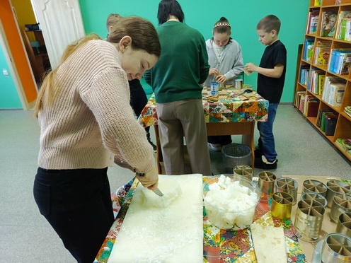 Добрые, отзывчивые ребята освоили методику подготовки материала для свечей и очень легко и быстро справились с заданием. Все вместе смогли сделать 31 окопную свечу, которые будут отправлены в зону СВО и помогут нашим солдатам в приготовлении пищи, будут использованы для обогрева.