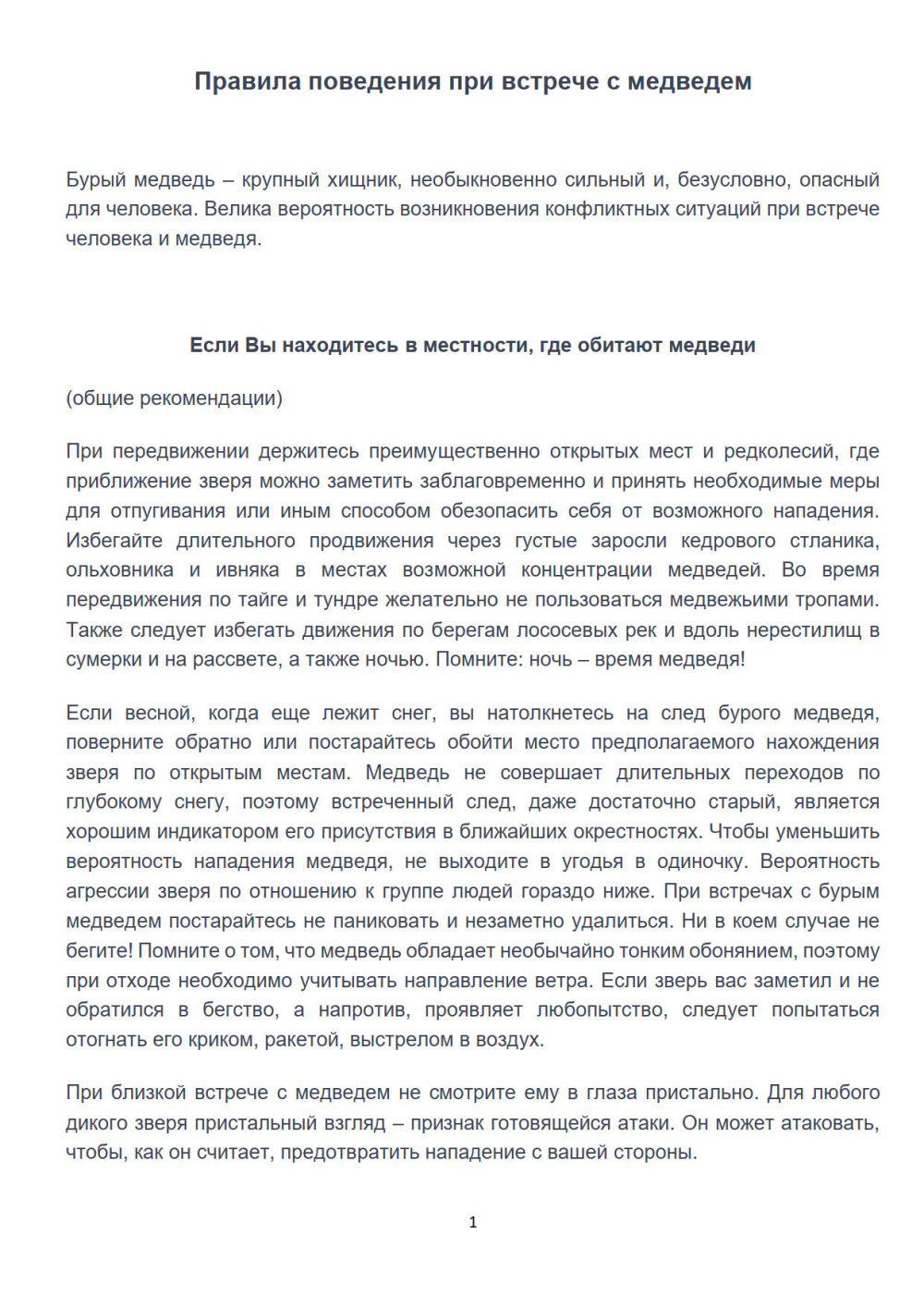 В случае обнаружения медведя необходимо сохранять спокойствие и соблюдать правила безопасности!