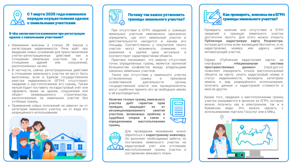 Если сведения о границах земельного участка, который является предметом сделки, в ЕГРН отсутствуют, то орган регистрации обязан приостановить рассмотрение документов, что фактически приводит к приостановлению оформления сделки. Требование, по которому регистрация прав возможна только в отношении земельных участков с точными границами, установлено с 1 марта 2025 года. Поэтому сейчас осуществление сделок на рынке недвижимости происходит исключительно с имеющими установленные границы участками, что делает процедуру межевания в этом случае обязательной.