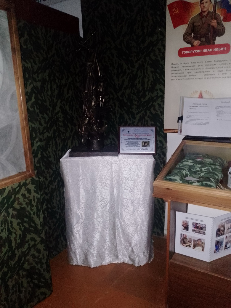 15 октября в Варненском краеведческом музее имени Савина В.И. прошла торжественная церемония передачи уникального экспоната из зоны проведения СВО - композиции «Путь к новому дню», сделана из автомата Калашникова, гильзы танковой, дрона FPV, окаймлена композиция прекрасным цветком, олицетворяющим стойкость и мужество города миллиона роз – Донецка от коллектива и директора ООО «Урал» города Магнитогорска Креслова Ивана Анатольевича, уроженца Варненского района. Автор композиции первый Заслуженный мастер народного творчества ДНР, член гильдии Кузнецов России Виктор Петрович Михалёв, превращающий гильзы и использованное оружие в произведения искусств, сделанные в технике художественной сварки, путем ковки композиций из металла. Композиции из стрелянного железа, из осколков и кусков снарядов перевитые розами, пропитанные болью жителей Донбасса – своеобразный бренд Мастера.