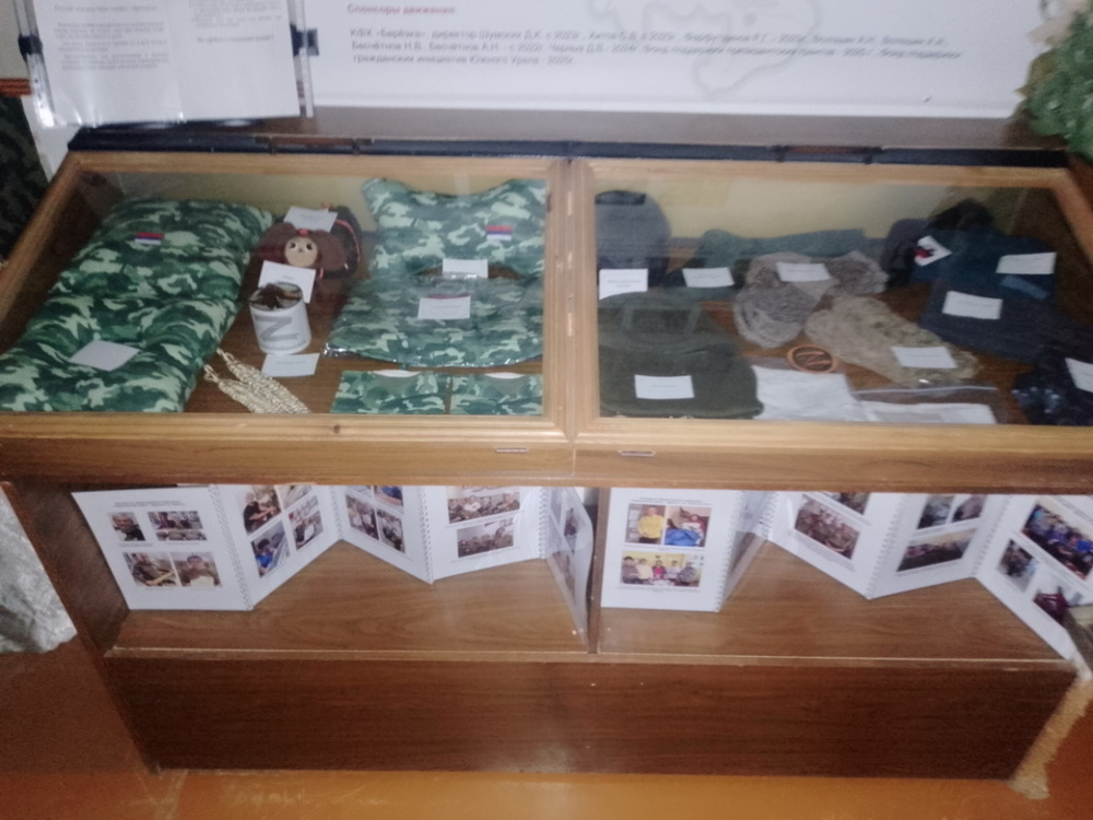 6 ноября от представителей и волонтеров общественной организации «Зов Урала», бескорыстно занимающихся изготовлением, сбором и доставкой гуманитарной помощи бойцам СВО, поступило более 20 предметов в фонд музея, которые стали ключевыми экспонатами первой тематической экспозицией «Время героев»