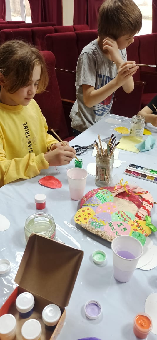 В ходе мероприятия участники говорили о пасхальных традициях в своих семьях, изучали технику нанесения первого мазка гуашью и смешивали краски. Кроме того, они провели увлекательную физминутку и поиграли в подвижные игры.