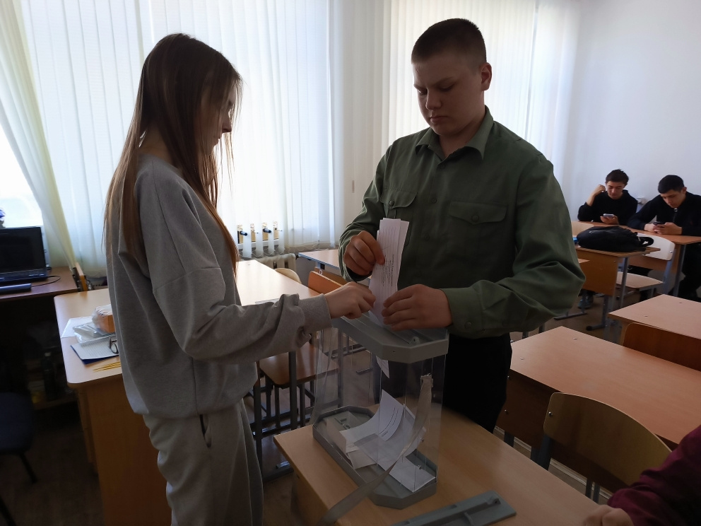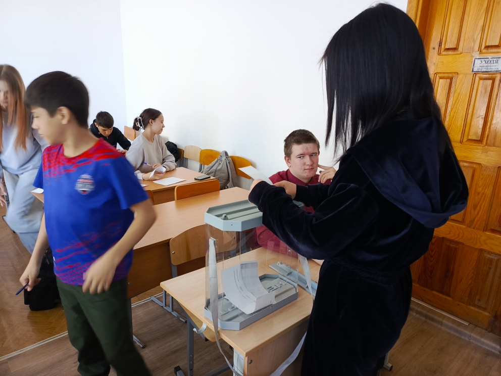 Голосование прошло с применением избирательных бюллетеней, с соблюдением всех правил и требований избирательного процесса и с использованием переносной урны для голосования. Результаты выборов Главы района были объявлены после подсчета голосов счетной комиссией, состоящей из ребят этого класса.