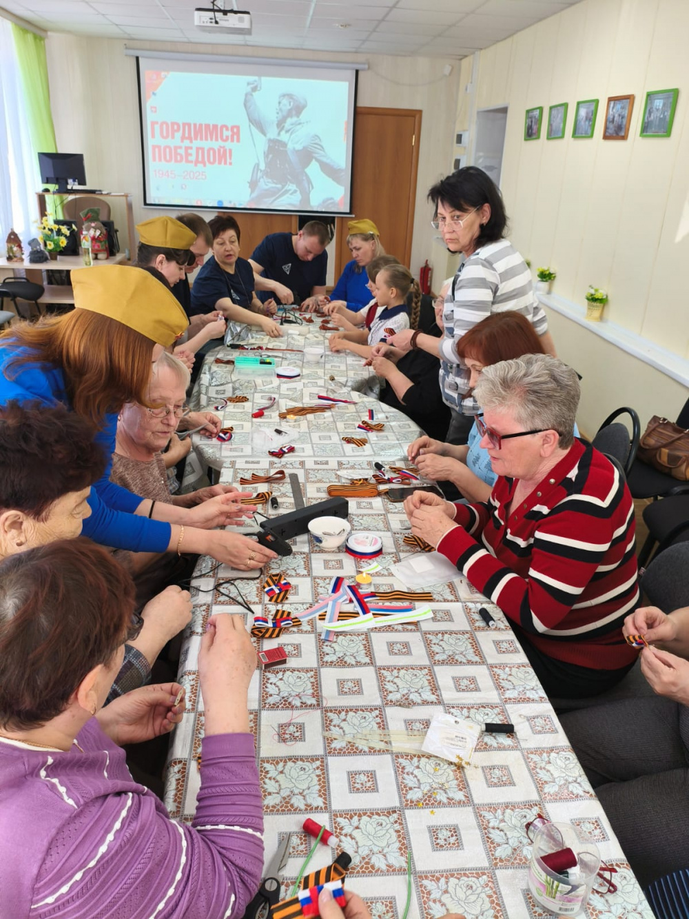 Под песни Великой Победы дружно и позитивно прошел мастер-класс. Совместными усилиями было изготовлено более 100 шт. нарядных брошей, которые в дни празднования Дня Победы будут подарены жителям нашего района.