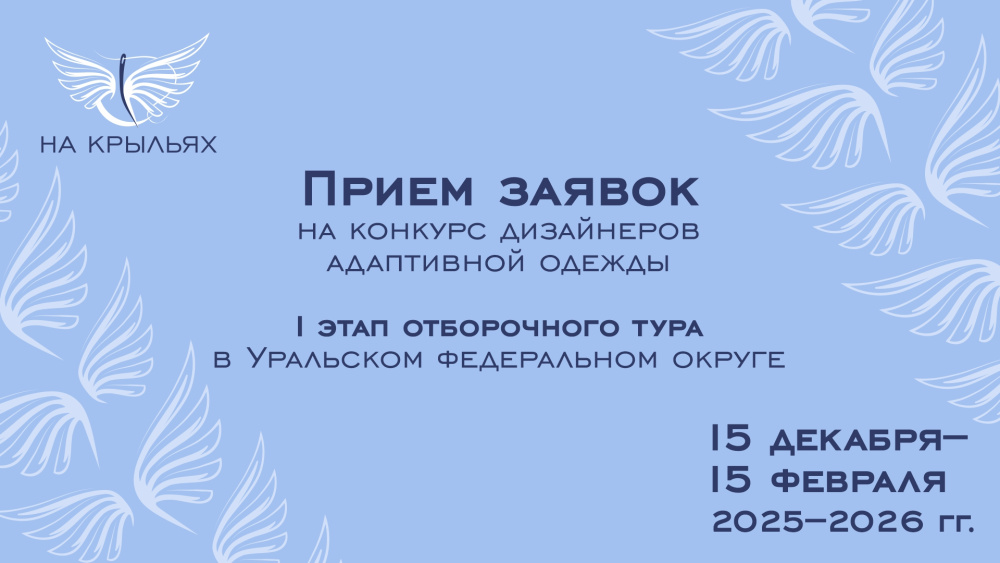 Оргкомитет конкурса адаптивной одежды «На крыльях» продолжает прием заявок от дизайнеров Уральского федерального округа. Организатором конкурса выступает фонд «Защитники Отечества». Прием заявок продлится до 15 февраля 2026 года, а финал окружного конкурса состоится в рамках межрегионального соревнования «Кубок Защитников Отечества».