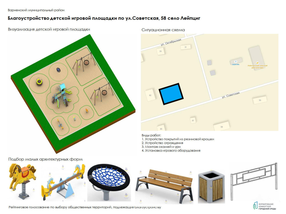 площадка по ул. Советской, 58 в Лейпциге.На сегодняшний день детская площадка в Варне занимает лидирующую позицию, за неё уже отдали 1015 голосов, на втором месте Правда — 842 голоса, на третьем месте площадка в Лейпциге — 671 голос.
