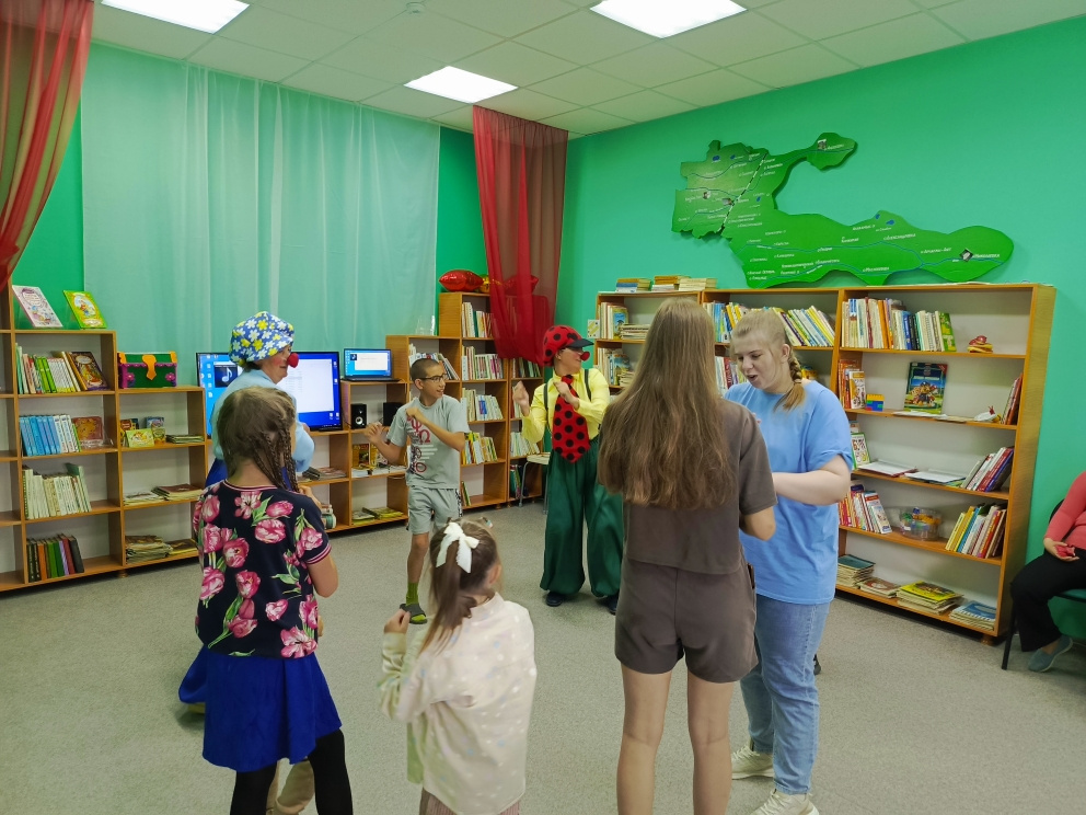 Веселые клоуны Бим и Бом встретили ребят из МОУ «Центр психолого-педагогической, социальной и медицинской помощи детям Варненского района» и предложили совершить путешествие «в лето» на шарике, ступе, лыжах, паровозике, делая остановки на разных станциях. Дети и взрослые активно пели, танцевали, ловили рыбу и выполняли различные задания.