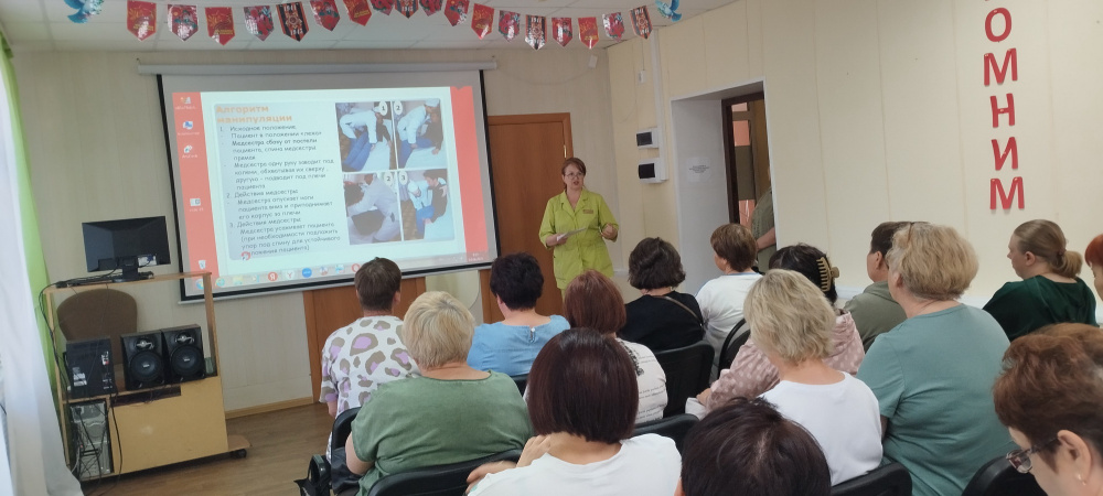 03.06.2025 г. в МУ «КЦСОН Варненского муниципального района» прошло очередное занятие «Школы ухода и реабилитации» на тему: «Перемещение маломобильного человека в кровати и вне её». Занятия провела медсестра ГБУЗ «Районная больница с. Варна» Евгения Петровна Кузнецова. Были рассмотрены вопросы применения вспомогательных средств для перемещения, пересаживания маломобильного человека. Современные технические средства значительно облегчают жизнь больных, а также берегут здоровье и силы людей, непосредственно ухаживающих за ними. К вспомогательным средствам относятся поворотный диск, опоры для подъёма с кровати, даже обычная пеленка либо ремень могут служить вспомогательным средством для поддержания и перемещения больного. При правильном перемещения больного необходим психологический контакт, главное - не причинять боль человеку, и в то же время обезопасить себя от нежелательных травм.