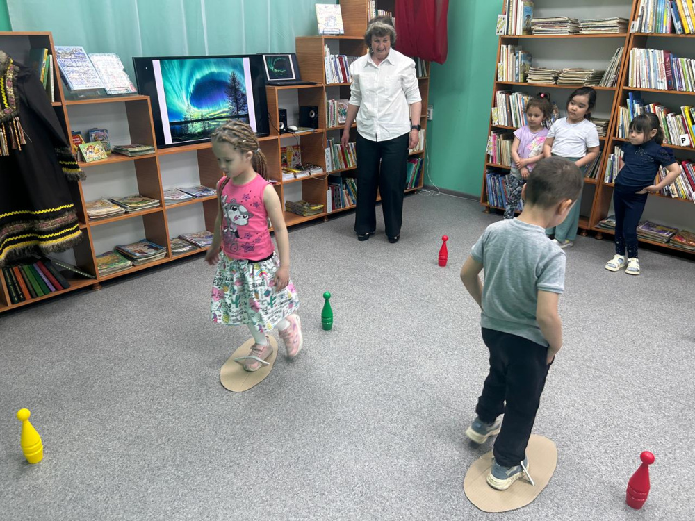 Из сказки народов ханты «Богатырь-медведь» дети узнали, как на Земле появился медведь. А игры «Ловля оленей», «Бег по-медвежьи» и «Бег в снегоступах» расширили представление об этом народе.