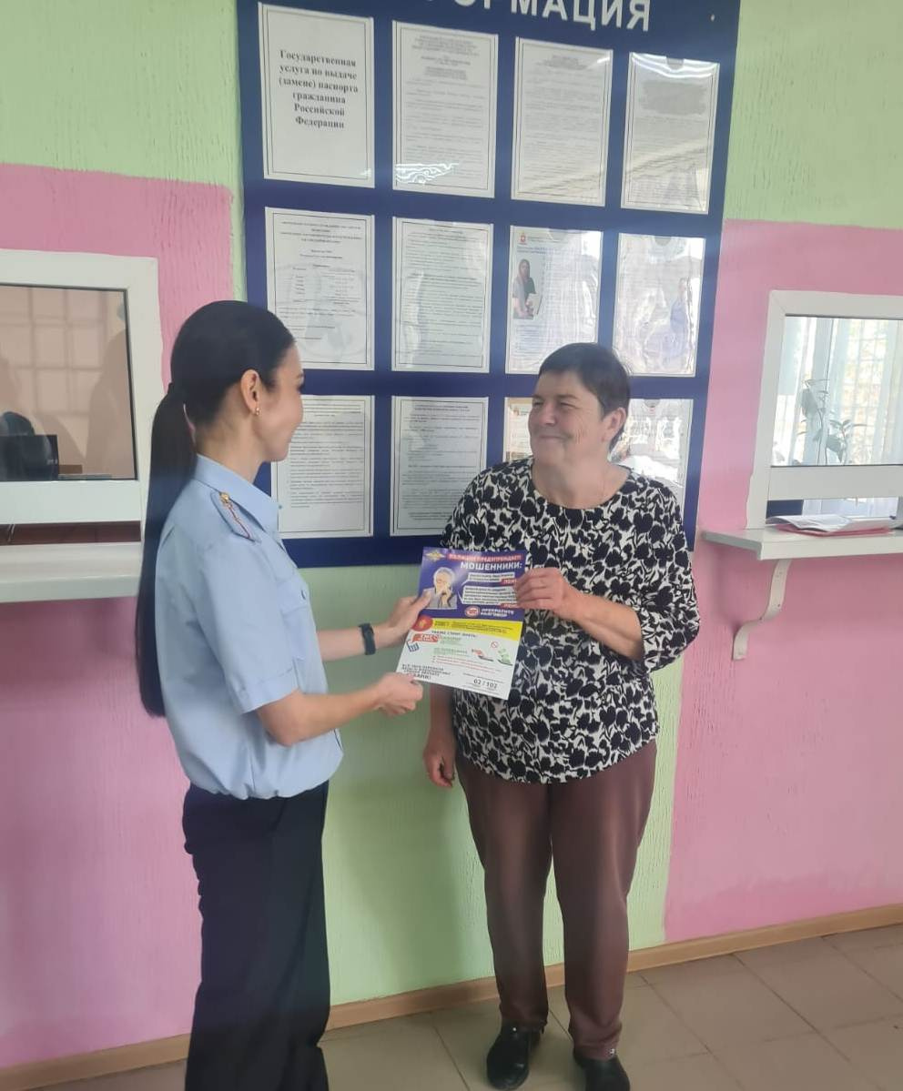 Начальник отделения по вопросам миграции майор полиции Алена Ермолаева и старший инспектор ОВМ младший лейтенант полиции Айзада Бикназарова вручают посетителям тематические памятки с практическими советами, напоминают гражданам, что нельзя сообщать третьим лицам персональные данные банковской карты, не следует снимать денежные средства под диктовку телефонного собеседника и оформлять кредит по чьему-либо указанию. По всем вопросам, касающимся денежных средств на банковских картах и счетах, нужно обращаться самостоятельно непосредственно к специалистам отделений кредитно-финансовых организаций.