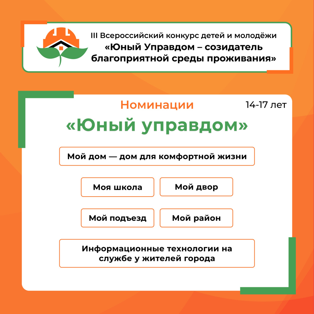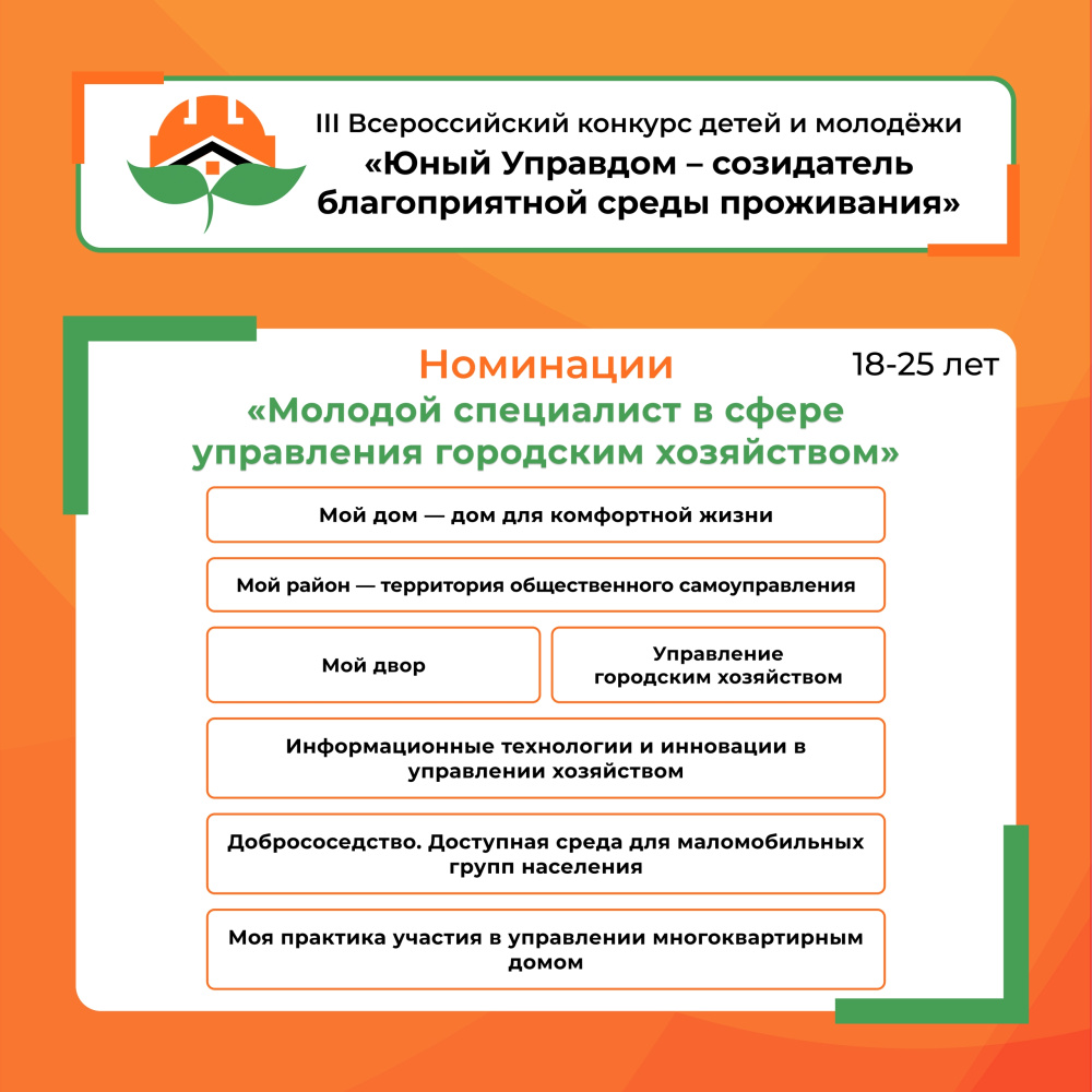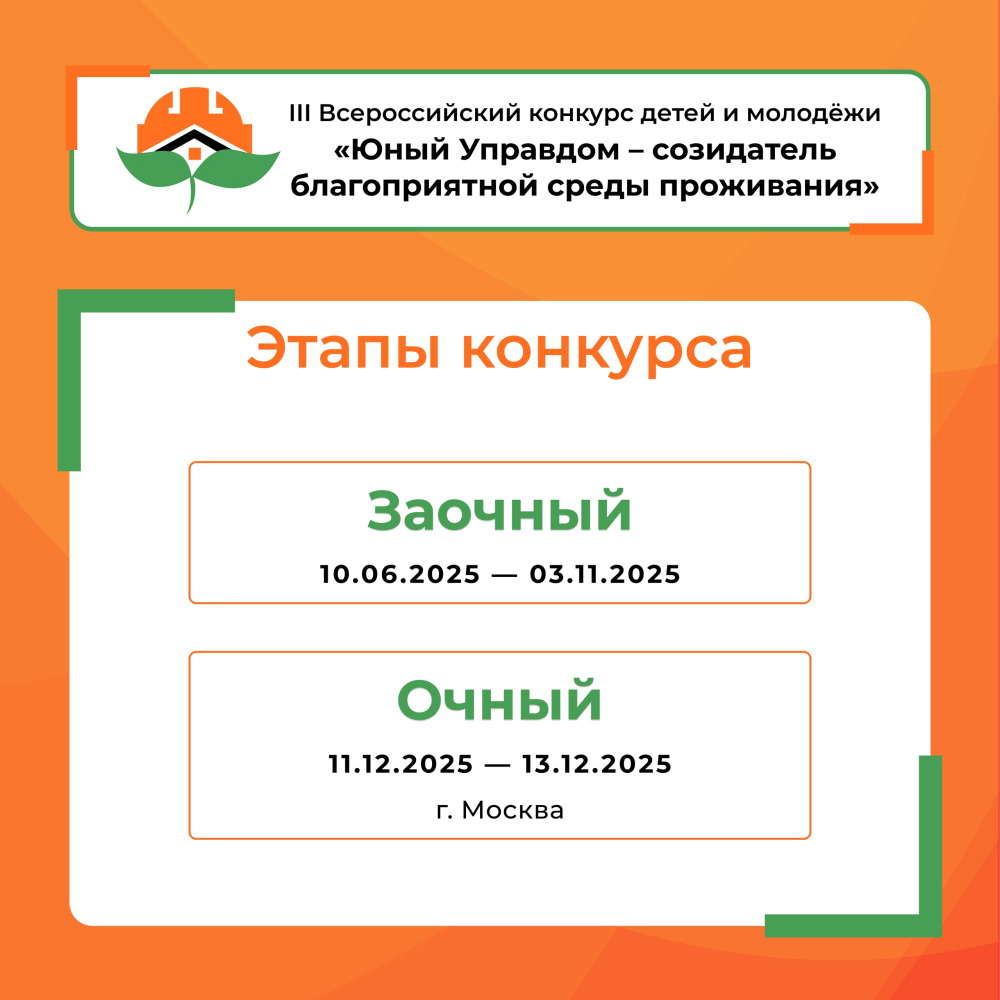 10 июня 2025 года начался прием заявок на заочный этап III Всероссийского конкурса детей и молодёжи «Юный Управдом – созидатель благоприятной среды проживания».