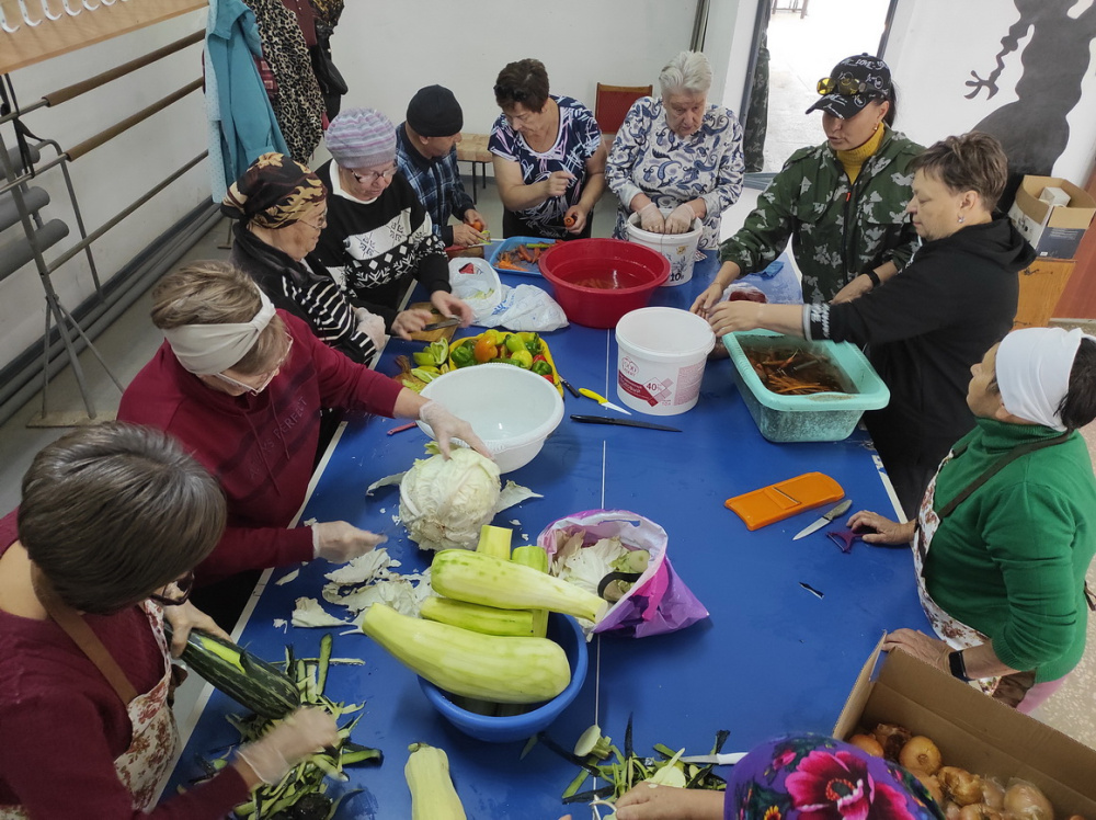 Сегодня идёт активная работа по переработке овощей для приготовления сухого борща. Именно эти продукты поддерживают бойцов, часами находящихся в зоне боевых действий.