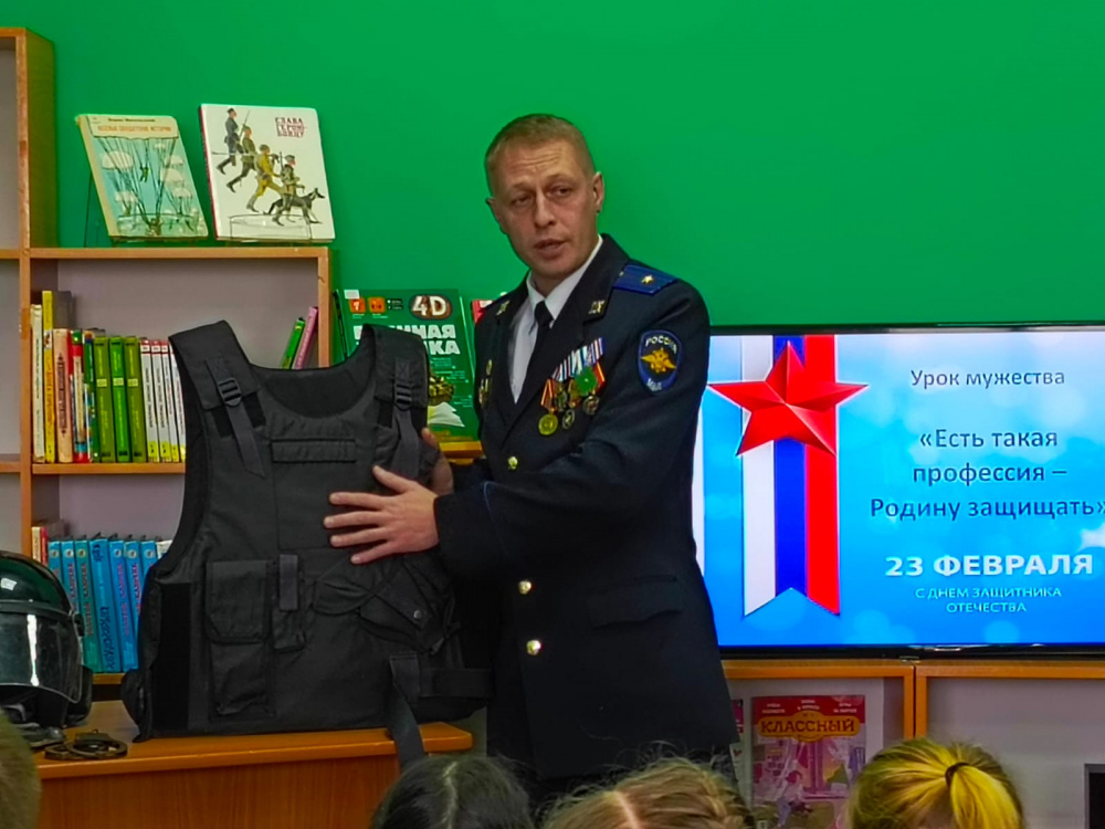 Гостем урока мужества «Есть такая профессия – Родину защищать» стал Алексей Коннов – председатель Совета ветеранов Варненского ОМВД, майор юстиции в отставке, который рассказал ребятам о структурах подразделения полиции и о том, какую функцию выполняет каждая из них.