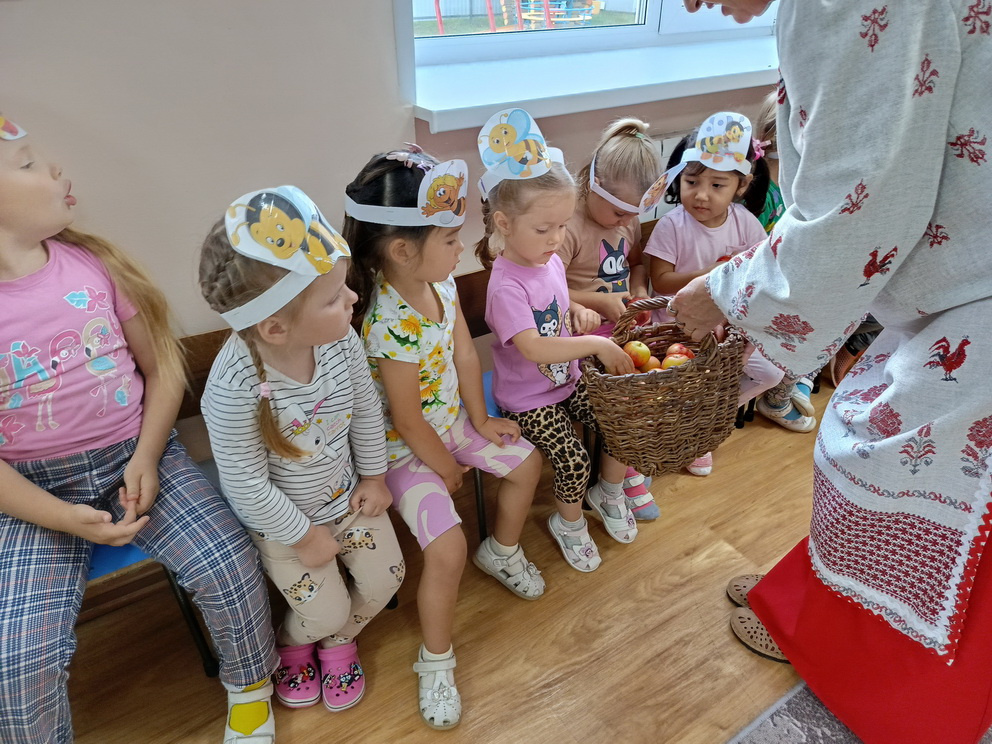 В начале праздника детям рассказали о традициях и значении каждого Спаса, а также о полезных свойствах мёда, откуда он берётся. Праздник начался с весёлой пляски под народную песню, которая сразу подняла настроение всем участникам. Затем малыши перевоплотились в пчёлок и приняли участие в «Пчелином марафоне», где они летали с цветка на цветок, собирая нектар и перенося его в «улей».