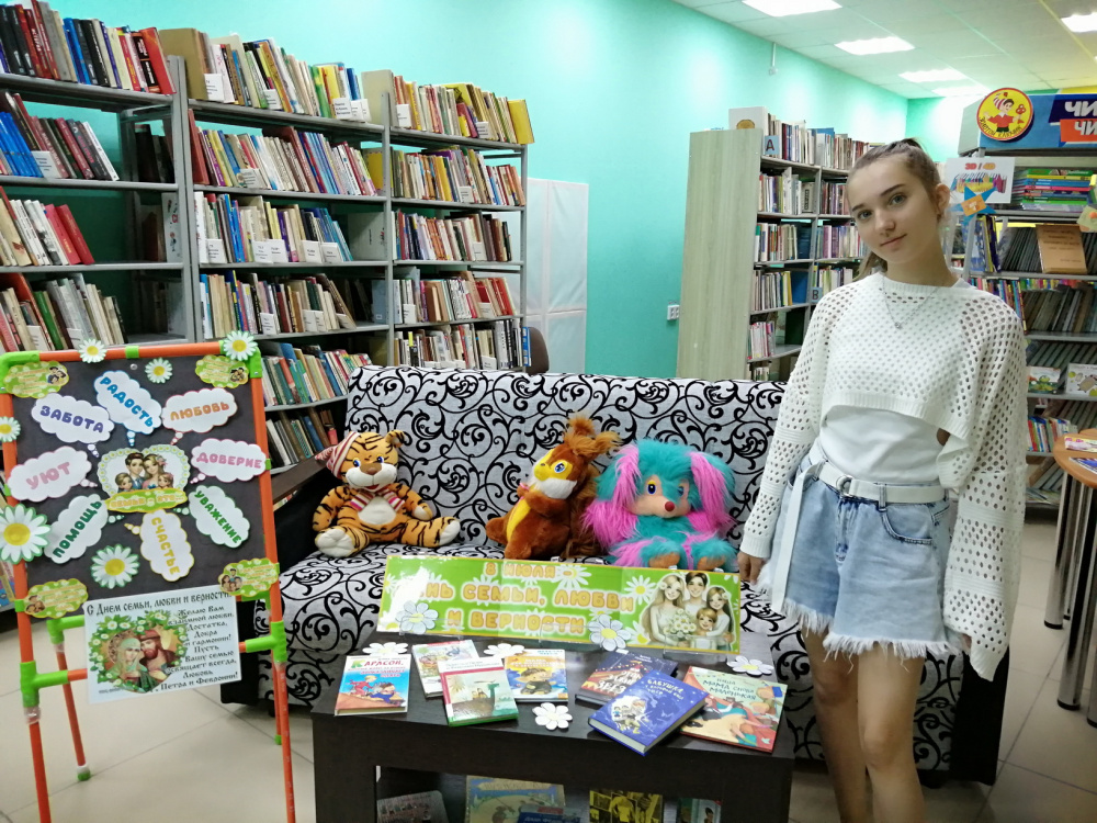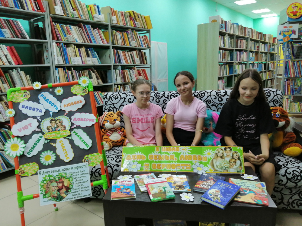 В ходе акции библиотекарь рассказывала юным читателям о происхождении праздника и традициях этого дня, почему именно ромашка является символом этого праздника. У книжной выставки «Дружим с книгой всей семьёй» дети познакомились с лучшими произведениями детской художественной литературы о семье. Среди авторов – В. Драгунский, Д. Непомнящая, А. Пикина, Т. Меньщикова, А. Барто и многие другие.