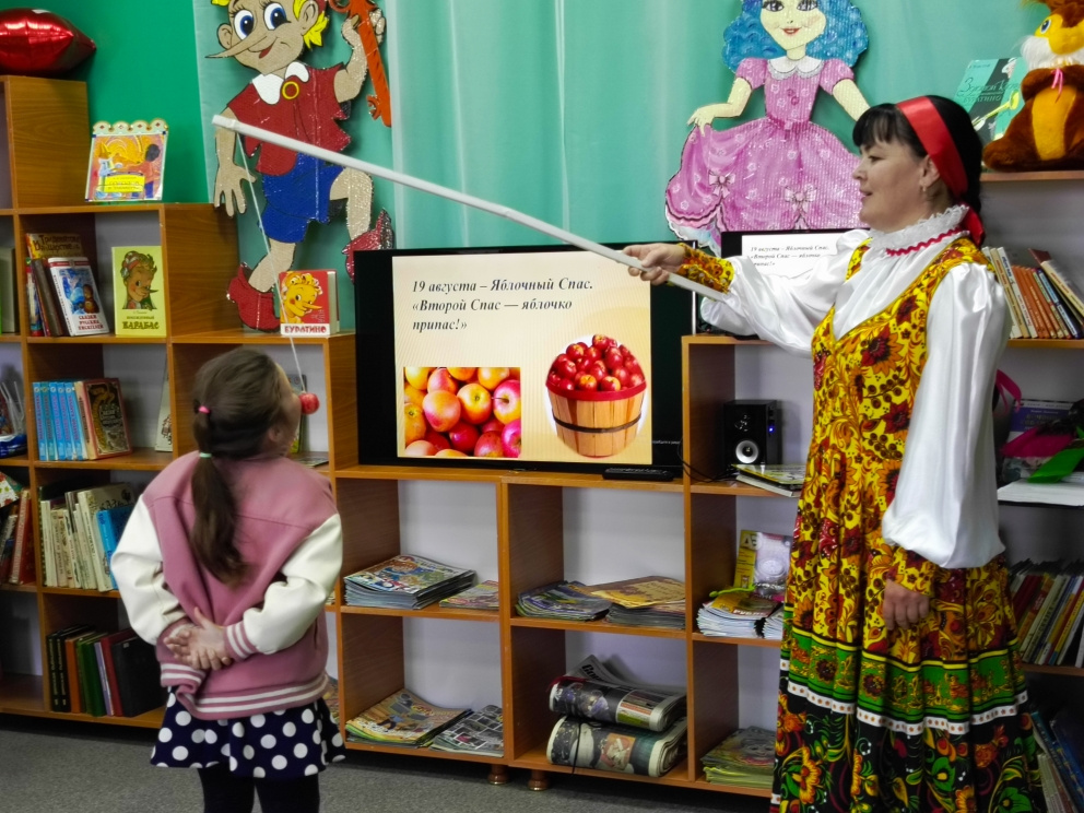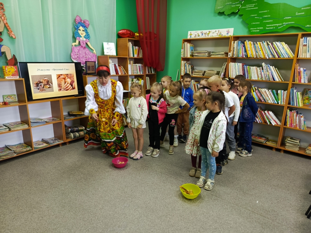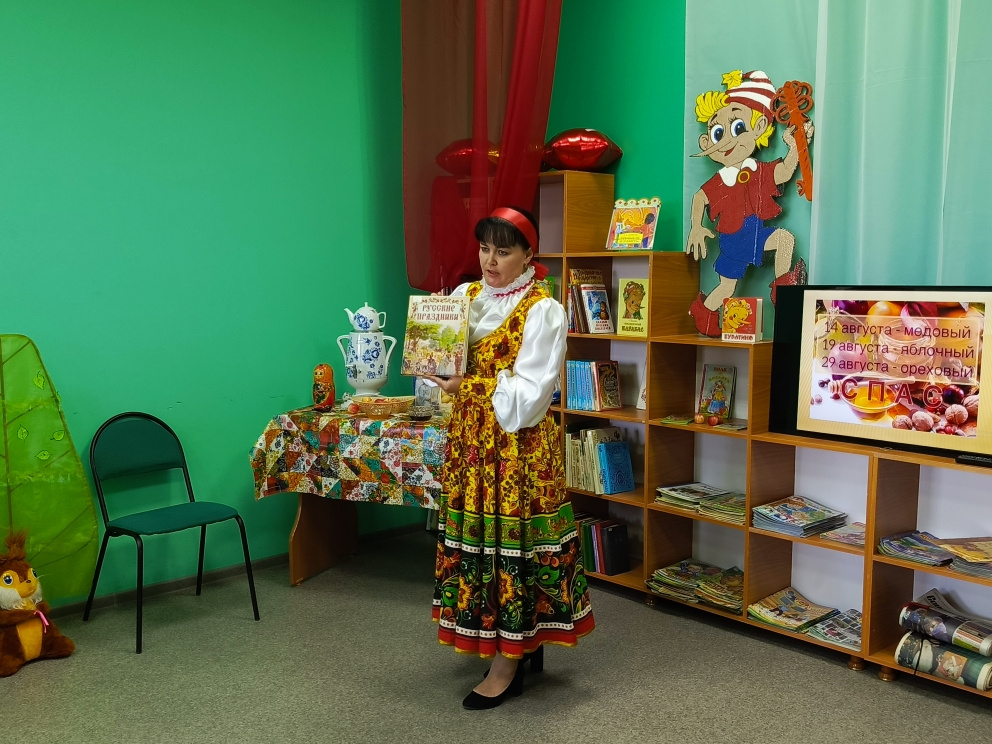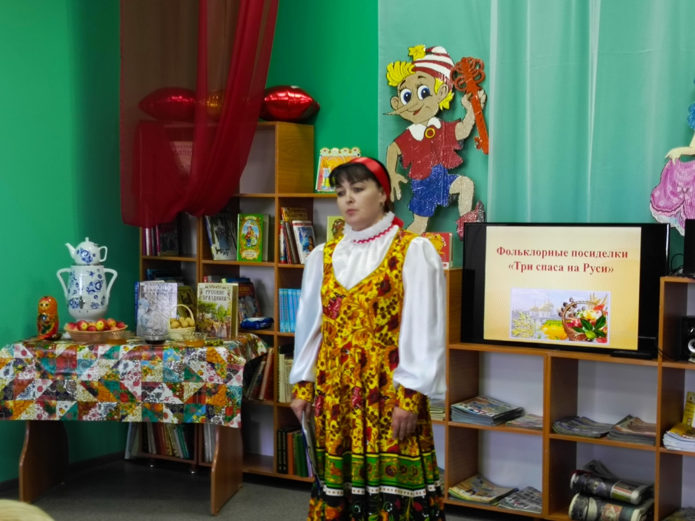 Дети узнали об истории и традициях празднования Спасов, в которых органически сплелись православие и народные поверья, связанные со сбором урожая мёда, яблок, орехов. Присутствующие на посиделках с азартом принимали участие в таких конкурсах как «Пчёлки», «Накорми друга яблоком», «Орешки для белочки» и др., а также показали свои знания сказок в «Литературной викторине».