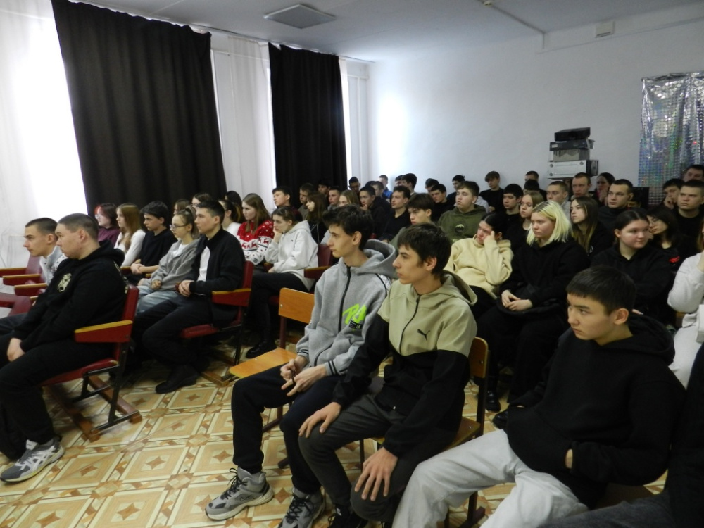Встреча со студентами 1,2 курсов и преподавателями состоялась в актовом зале техникума.