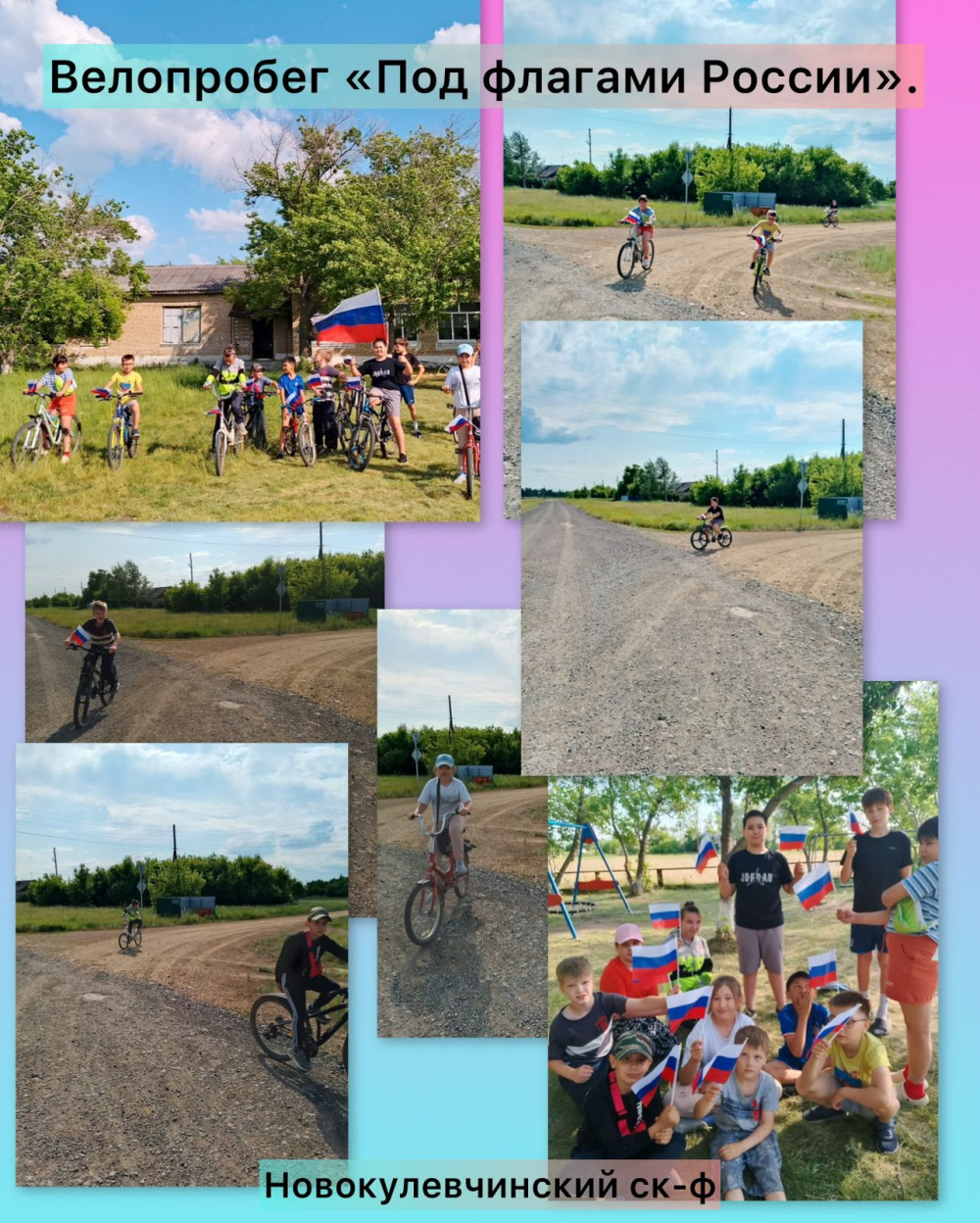 В посёлке Новокулевчи 12 июня состоялся велопробег «Под флагом России», приуроченный к празднованию Дня России. Юные велосипедисты проехали по улицам посёлка, чтобы поздравить жителей с праздником и напомнить им о значении государственного флага в жизни каждого человека.